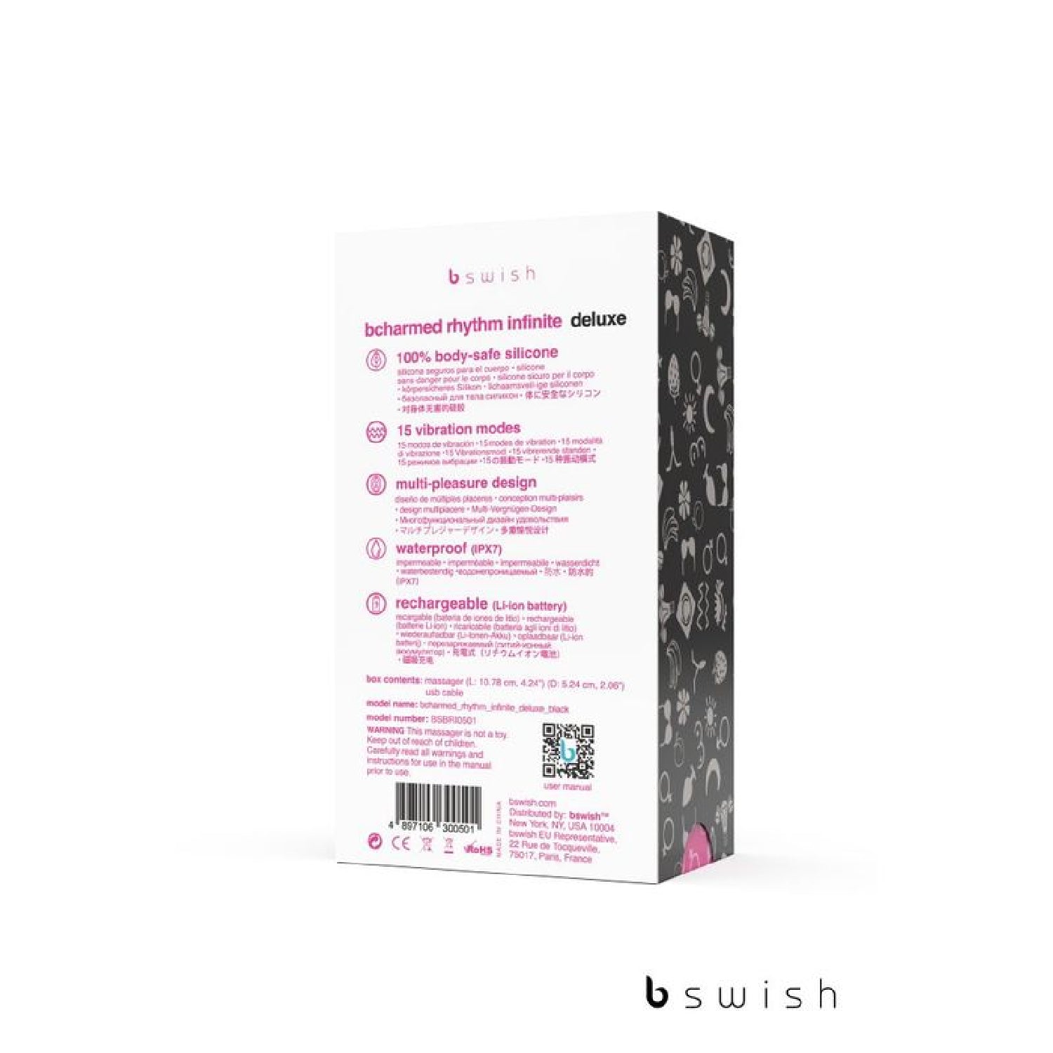 Meet the bcharmed rhythm infinite deluxe - with our new ultra-vibe motor technology, 15 intensities, versatile comfort-fit design, and an innovative C-nub tip for the ultimate in partner play ecstasy; yours and their next level of unforgettable intimacy awaits!