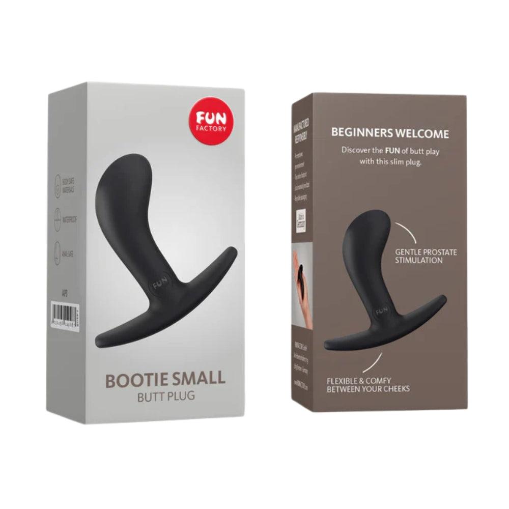 Bootie Plug Small has been a customer favorite for years thanks to its simple, smooth shape, stimulating curve, and perfect-fit base. For years, the small size introduced curious beginners to the joys of anal play. Later, by popular demand, we added two additional sizes, a medium and a large, so that size enthusiasts can enjoy a perfectly-shaped butt plug too!