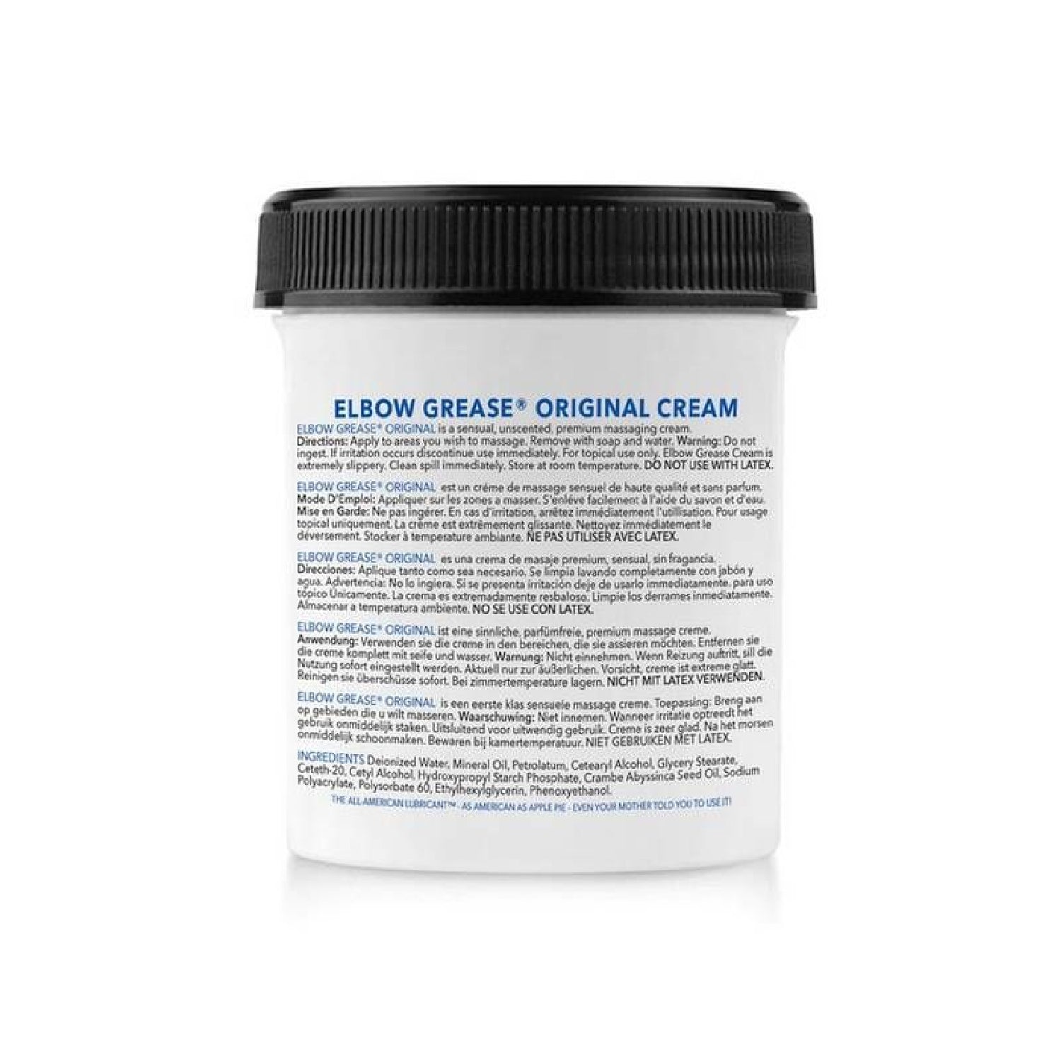 Smooth and creamy to the touch, elbow grease quickly coats and allows for a long lasting and friction-free experience.