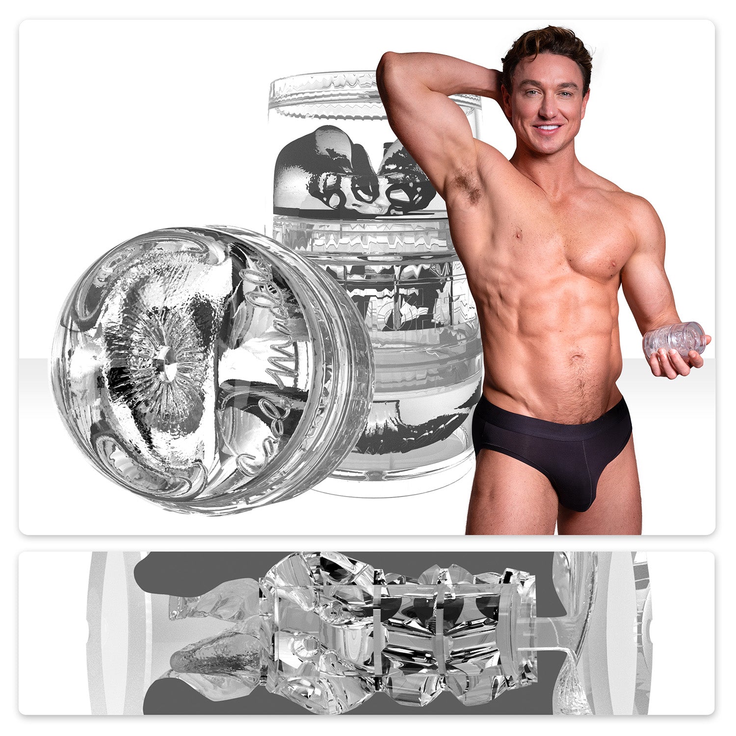 The Cade Maddox Quickshot features dual unobstructed entry points, molded directly from Cade’s famously kissable lips and tight, sculpted butt. Compact and crystal-clear, this Quickshot delivers high-intensity pleasure whether you’re flying solo or sharing the fun with a partner during oral play.