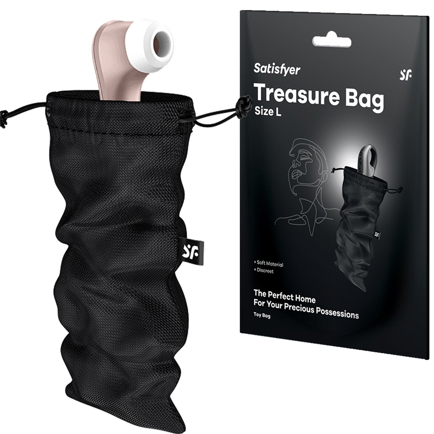 Are you looking for the perfect home for your medium-sized Satisfyer toys? Allow us to introduce you to the size L Treasure Bag, one of Satisfyer's toy bags, specifically designed to store your Pro 2 and all other Satisfyer treasures. Whether you're looking for an elegant way to store your pleasure product in your drawer or want to take your favourite Satisfyer with you on your travels and shield it from prying eyes, the Satisfyer Treasure Bags are exactly what you need! Crafted from soft, durable material, they keep your treasures safe until it's time for the next sexy adventure. Looking for the best toy bag for your Pro 2 or other medium sized toys? The Satisfyer Treasure Bag in size L is exactly what you are looking for.