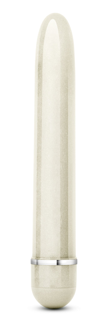 Our new Slimline Vibe is a seven inch, multi-speed vibrator with a classic shape and a modern pearl finish. Twist-dial base gives you control over your preferred speed destination, while the waterproof seal gives you choice of location. Play in the shower, bath or hot tub with this durable, waterproof vibrator. Made from body safe ABS plastic, Slimline Vibe is also non-porous making it safe to use with water-based, silicone-based and hybrid lubricants. Motor runs on 2 AA batteries, not included. Easy to use and clean. The Slimline Vibe is a classic made better by Blush Novelties.