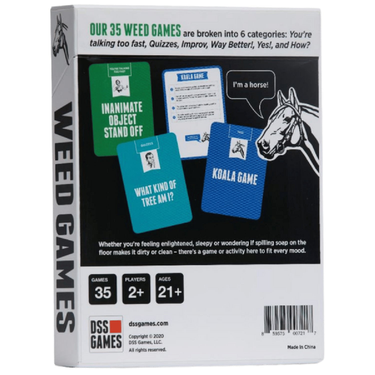 There are 6 categories of stoner games - You're Talking Too Fast, Quizzes, How?, Yes!, Way Better and Improv.